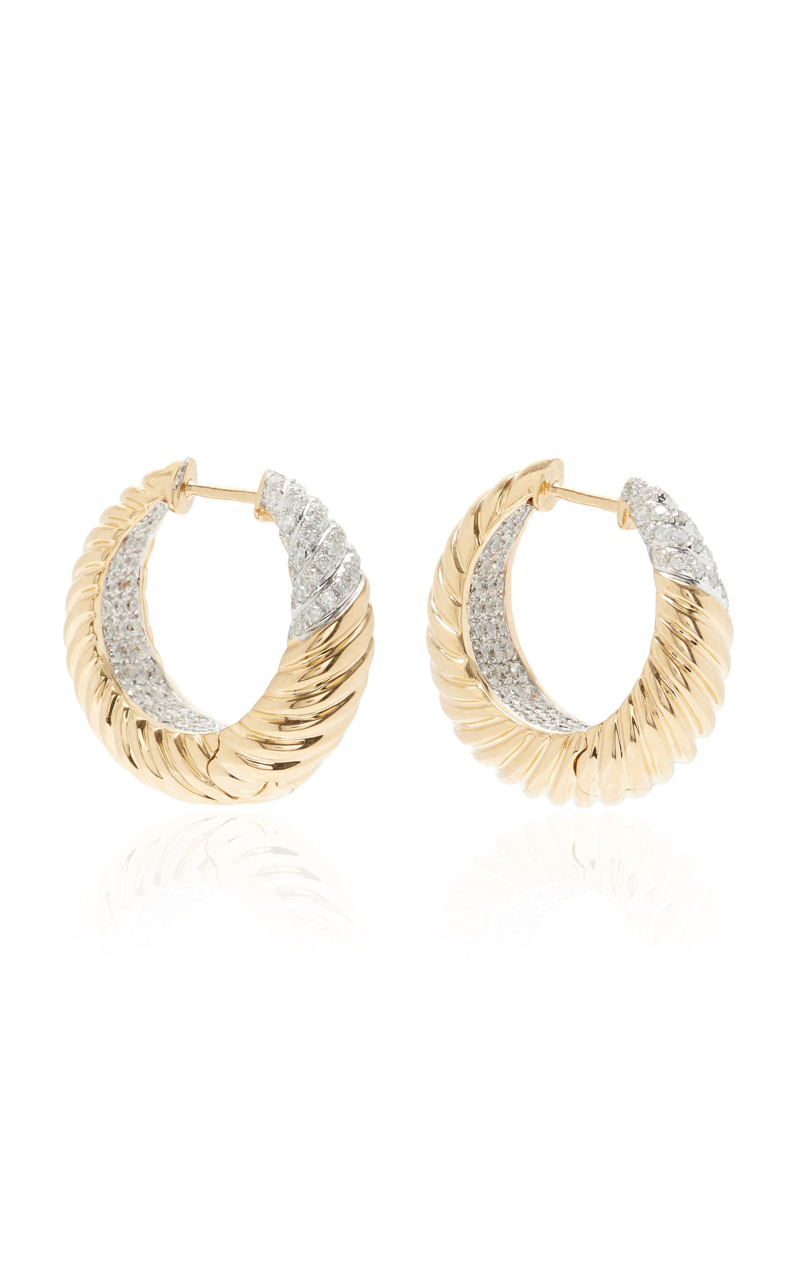 Godron 18K Yellow Gold Diamond Hoop Earrings gold