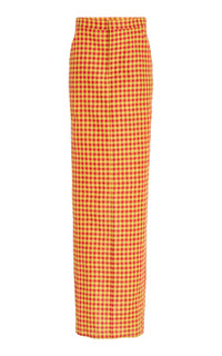 ZANKOV is a knitwear collection that establishes a new visual language in fashion and textiles through shape, texture and color. Quality and finish are paramount: the inside of each garment is just as important as the outside. Zankov often juxtaposes fine natural fibers such as virgin wools, mohair, Merino and Alpaca with distinctly crafted techniques such as intarsias, double knit jacquards and digital printing. The 'Ludivine' skirt features a fitted pencil shape crafted from micro-checked vichy linen. PRODUCT DETAILS - Spring/Summer '25 - Concealed zip fastening along front - Composition: 100% Linen - Dry clean only - Made in the USA SIZE & FIT - Designed for a slim fit