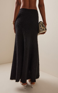 PRODUCT DETAILS - Low-waisted, flared hem, midi - Slip on - Unlined - Composition: 35% Mohair, 35% Alpaca, 30% Polyamide - Color: black - Dry clean only - Fall/Winter '25
