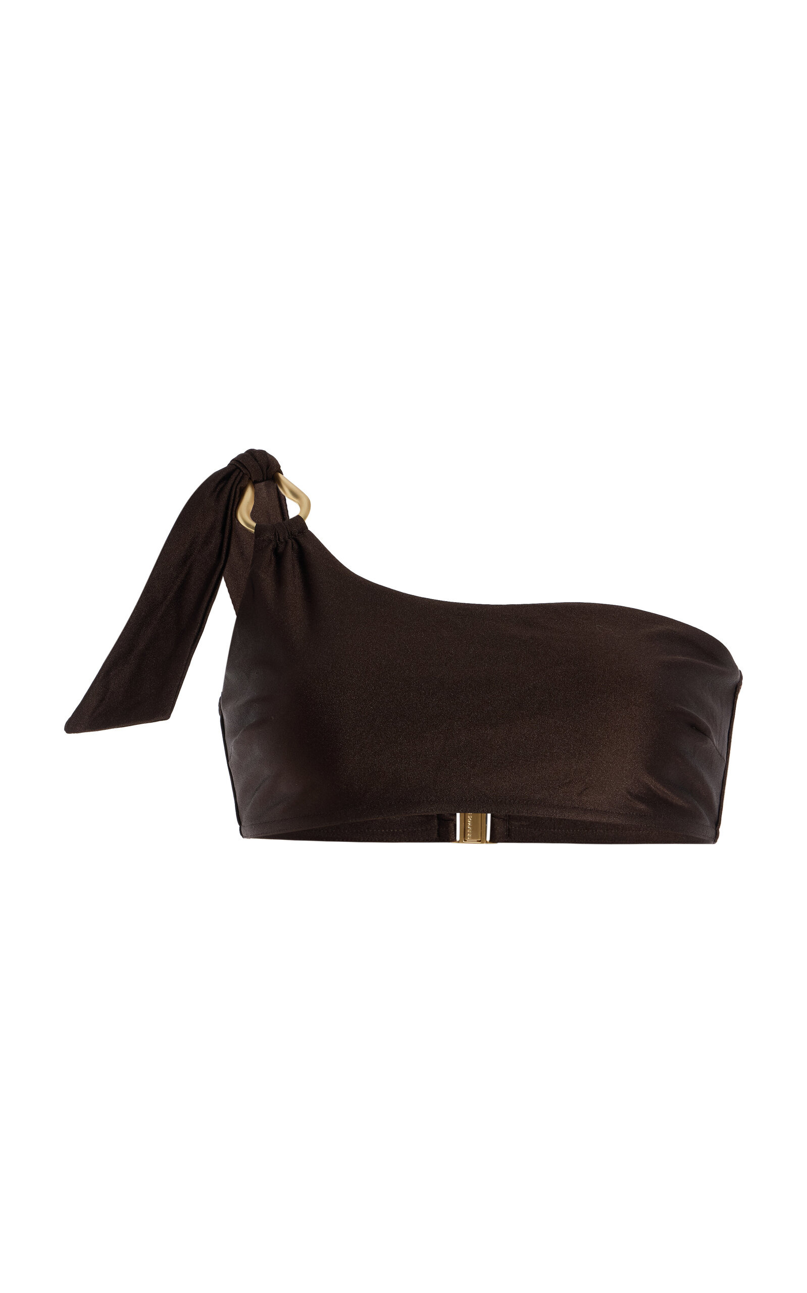 Sister Nicky and Simone Zimmermann, the design duo behind Zimmermann, have established themselves as stalwarts of the Australian design scene. Crafted from shimmering swim, this one-shoulder bikini top is strung with golden hardware. Pair it with the matching bottom. PRODUCT DETAILS - Pre-Fall '25 - Slip on - Composition: 80% Polyamide, 20% Elastane - Dry clean - Imported SIZE & FIT - Designed for moderate coverage