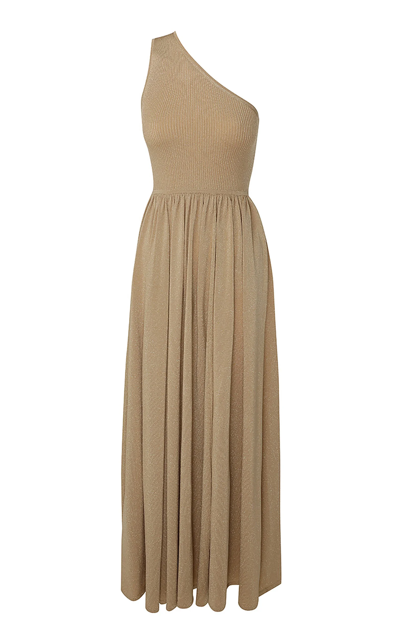Crush Asymmetric Metallic Crepe Maxi Dress gold