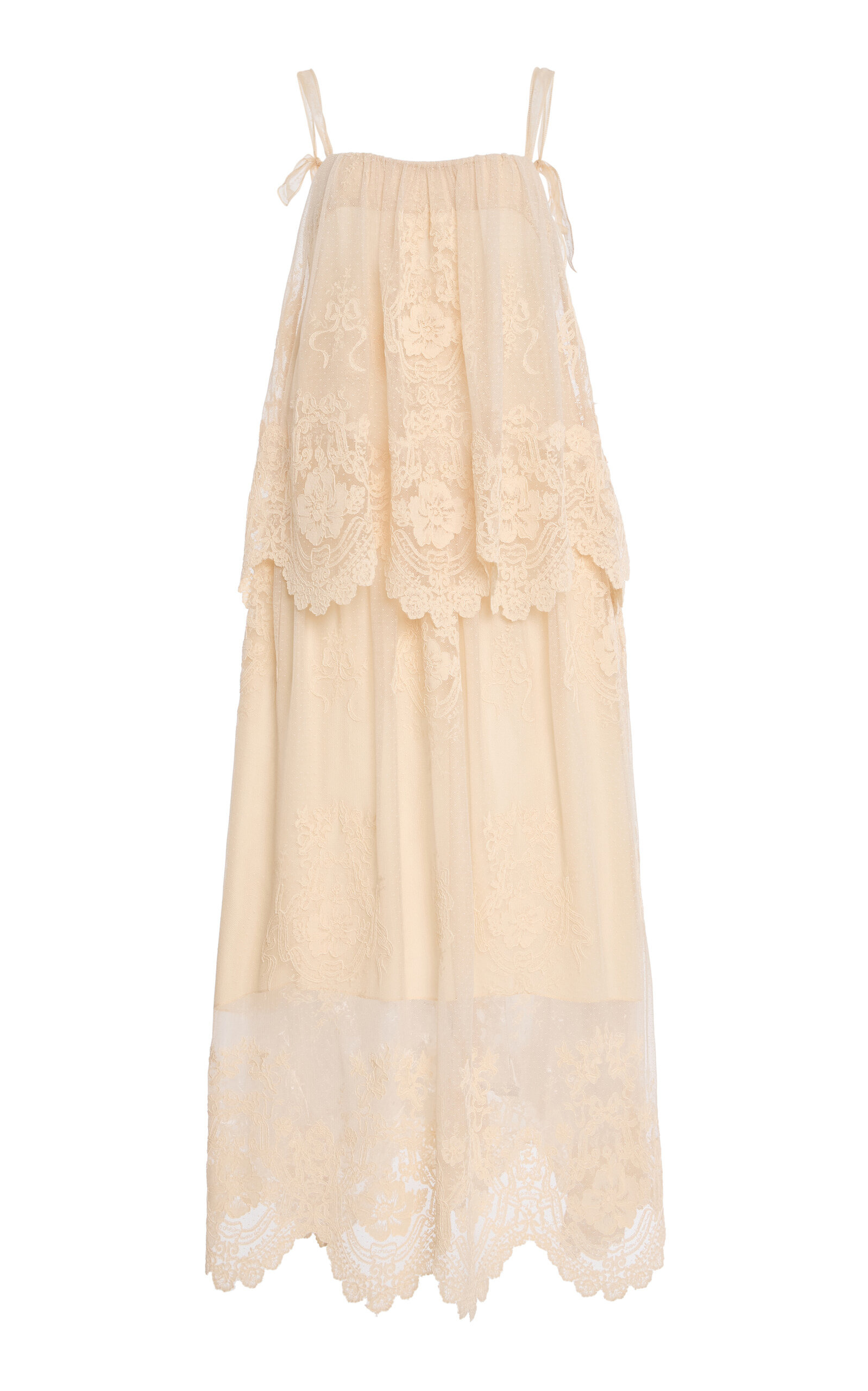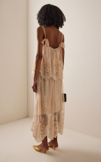 Tiered lace midi dress Cream
