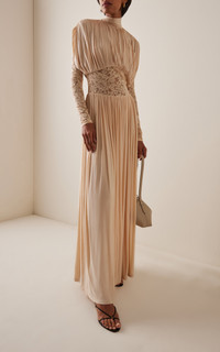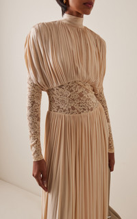 In Twisted Romance, Zimmermann embarks on a voyage through nostalgia, femininity, and the fantasy of escape — a Cruise 26 collection that reimagines pirate folklore through the soft-focus lens of modern romance. The Rebellion is a maxi gown featuring a stand collar, all-over heavy gathering, finished with lace panelling throughout and invisible zip closure. PRODUCT DETAILS - Resort '26 - Zip fastening - Composition: 90% viscose, 10% elastane - Designer color: Cream - Dry clean - Imported SIZE & FIT - Our model is wearing a size 1 - Model is 5'9" with a 32" bust, 24" waist, and 35" hip - Fits true to size, our fit specialist recommends taking your normal size - Designed to be fitted on the body