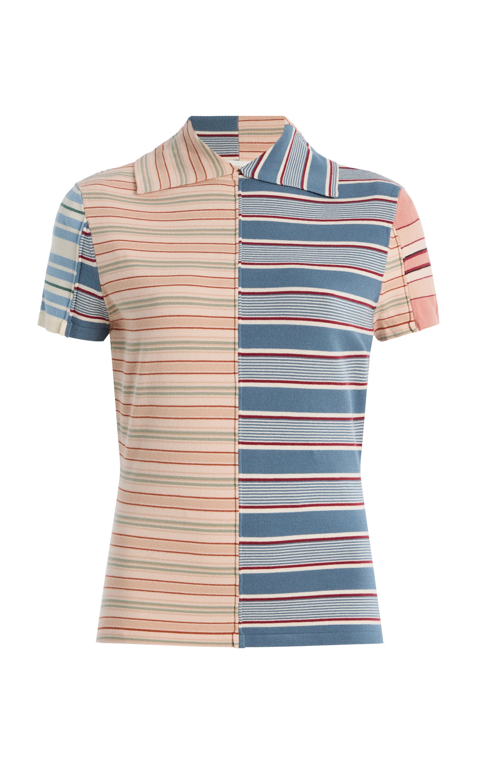 In Twisted Romance, Zimmermann embarks on a voyage through nostalgia, femininity, and the fantasy of escape — a Cruise 26 collection that reimagines pirate folklore through the soft-focus lens of modern romance. From the 'Rebellion' collection, this top has a spliced design made from a soft knit with a polo collar. It's designed to be worn with the matching skirt. PRODUCT DETAILS - Resort '26 - Slip on - Composition: 70% viscose, 30% polyester - Dry clean - Imported SIZE & FIT - Our model is wearing a size 1 - Our model is 5'10" with a 31" bust, 23.5" waist, and 33.5" hip - Fits true to size, our fit specialist recommends taking your normal size - Designed for a close fit