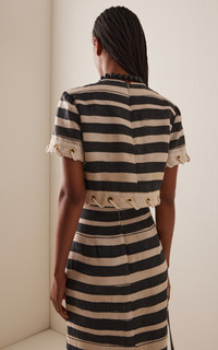 Sisters Nicky and Simone Zimmermann, the design duo behind Zimmermann, have established themselves as stalwarts of the Australian design scene. Crafted from 100% linen, the ‘Rebellion’ top features bold stripes, a cropped silhouette, and rope-inspired eyelets trimming the sleeves and hem. Pair with the matching skirt for a coordinated look. PRODUCT DETAILS - Resort '26 - Slip on - Composition: 100% linen - Dry clean - Imported SIZE & FIT - Our model is wearing a size 1 - Model is 5'10” with a 30" bust, 24" waist, and 34" hip