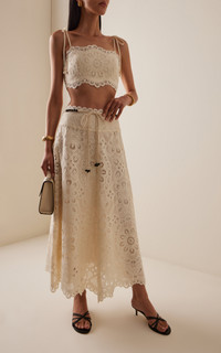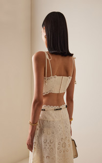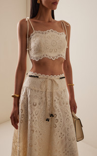 Sister Nicky and Simone Zimmermann, the design duo behind Zimmermann, have established themselves as stalwarts of the Australian design scene. Made from embroidered lace, the 'Rhiannon' top has a bandeau silhouette with beaded shoulder ties and an elastic backing for a snug fit. Complete the look with the matching skirt. PRODUCT DETAILS - Pre-Fall '25 - Slip on - Composition: 100% polyester - Dry clean - Imported