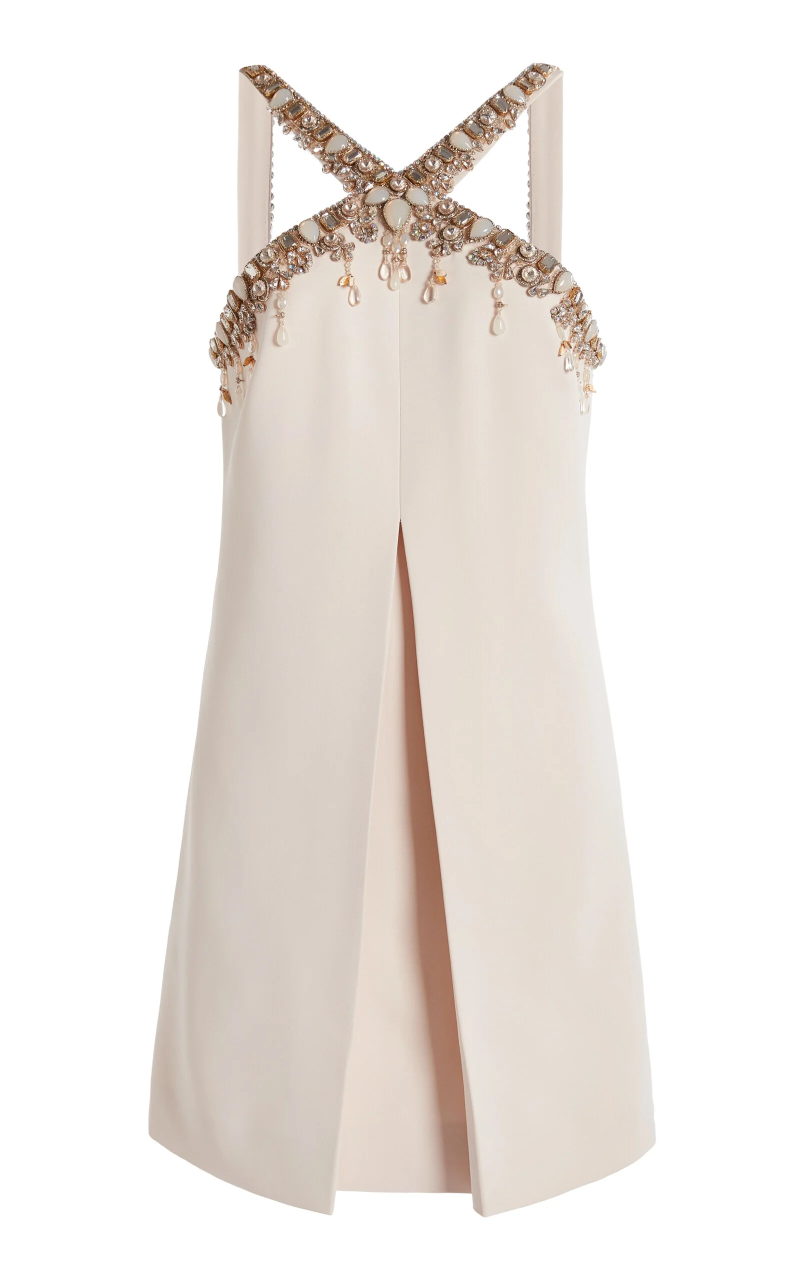 PRODUCT DETAILS - Sleeveless, halter, mini, embellished - Slip on - Composition: Composition: 100% POLYESTER - Color: Birch - Dry Clean Only - Resort '26