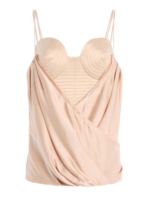Draped Silk-Satin Bustier Top neutral