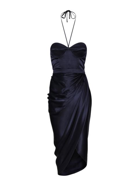 Laguna Salada Wrap-Effect Silk-Charmeuse Midi Dress navy