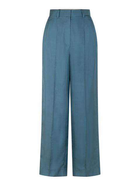 Antonella Tailored Dupioni Silk Straight-Leg Pants blue