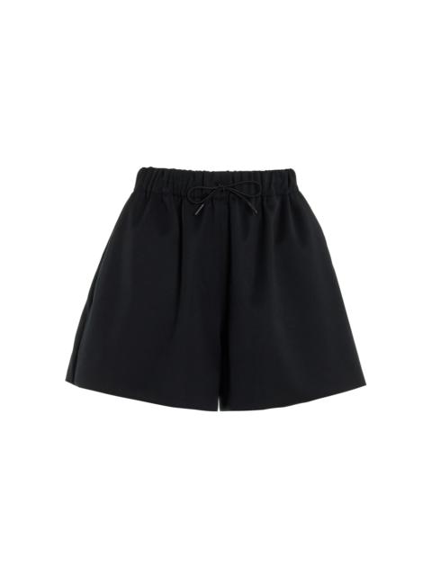 Faux Leather-Trimmed Wool-Blend Flared Shorts black