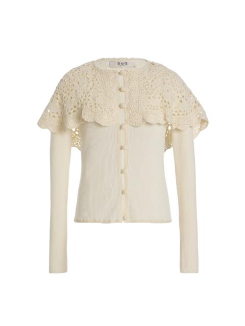 Nara Crochet-Trimmed Wool Cardigan ivory