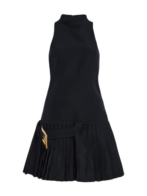 Belted Flared Grain de Poudre Dress black