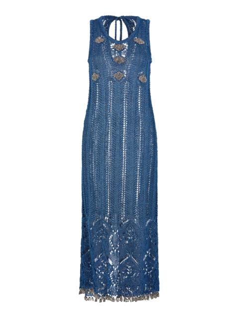 Embellished Metallic Knit Midi Dress turquoise