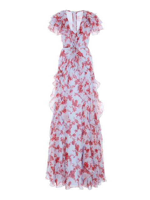 Tie-Detailed Silk-Chiffon Midi Dress off-white
