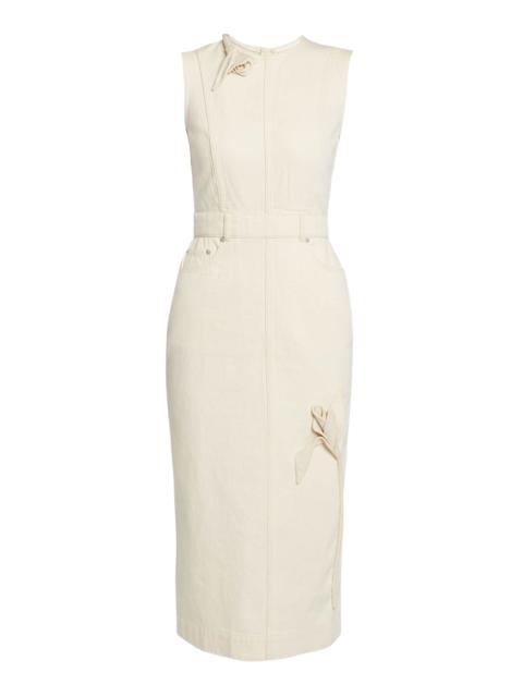 Embroidered Fluted Cotton Midi Dress dark wash
