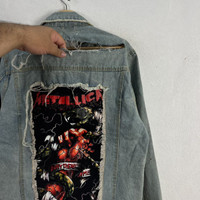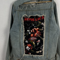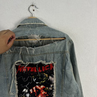 Distressed Denim - RARE PUNK DISTRESSED DESIGN DENIM JACKET METALLICA BIG LOGO
