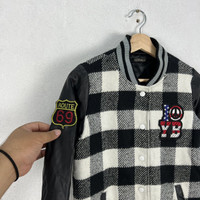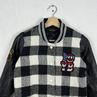 Japanese Brand - RARE TARTAN DESIGN VARSITY JACKET ROTE ROSE BIG LOGO