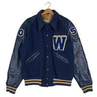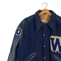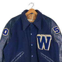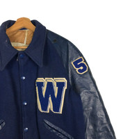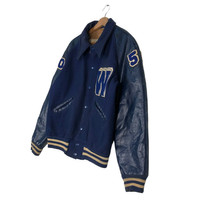 VINTAGE LEATHER VARSITY JACKET JUMPER BIG LOGO USA