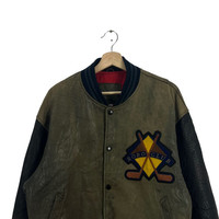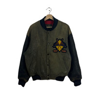 VINTAGE LEATHER VARSITY JACKET ROBO COLLECTIONCLUB BIG LOGO