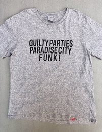 Please read all the description carefully before purchase.. SIZE ON TAG : XLARGE TAG : GUILTY PARTIES METERIAL: 100% COTTON ARMPIT TO ARMPIT : 21.5" INCHES LENGTH BACK TOP COLLAR TO BOTTOM : 27" INCHES DEFECT : NONE MADE IN : JAPAN PAYMENT And SHIPPING: ■Accept "PAYPAL" Only ■This item will be ship along with Tracking Number after received a completed payment. ■PLEASE LEAVE YOUR PHONE NUMBER DURING PURCHASES. PHONE NUMBER REQUIRED FOR DELIVERED PROSESS. Dear valued customer: ●All Measurements were been measured flat on the floor. ●Please don't expect this item condition is 100% like new unless I have mention it. ●Please do not hesitate to contact me if you have any inquiries.Its my great pleasure to have a conversation with customers. ATTENTION : Please pay close attention to measurements provided. Do not rely on tag size as pre-worn items may have been altered, stretched or shrunk & vintage sizes do not directly translate the modern sizes.The best way to ensure a correct fit is to compare our measurements with the measurements of a similar item that you know fits you well.Please enlarge the photos for clearer image. ** Please be inform that ALL SALES ARE FINAL, NO RETURNS THANK YOU VERY MUCH FOR YOUR VISIT AND SHOPPING WITH CONFIDENT