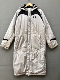 Please read all the description carefully before purchase.. SIZE ON TAG : LARGE TAG : UNDER ARMOUR METERIAL: 100% POLYESTER ARMPIT TO ARMPIT : 24" INCHES LENGTH BACK TOP COLLAR TO BOTTOM : 47.5" INCHES SLEEVE LENGTH : 30.5" INCHES DEFECT : NONE MADE IN : CHINA PAYMENT And SHIPPING: ■Accept "PAYPAL" Only ■This item will be ship along with Tracking Number after received a completed payment. ■PLEASE LEAVE YOUR PHONE NUMBER DURING PURCHASES. PHONE NUMBER REQUIRED FOR DELIVERED PROSESS. Dear valued customer: ●All Measurements were been measured flat on the floor. ●Please don't expect this item condition is 100% like new unless I have mention it. ●Please do not hesitate to contact me if you have any inquiries.Its my great pleasure to have a conversation with customers. ATTENTION : Please pay close attention to measurements provided. Do not rely on tag size as pre-worn items may have been altered, stretched or shrunk & vintage sizes do not directly translate the modern sizes.The best way to ensure a correct fit is to compare our measurements with the measurements of a similar item that you know fits you well.Please enlarge the photos for clearer image. ** Please be inform that ALL SALES ARE FINAL, NO RETURNS THANK YOU VERY MUCH FOR YOUR VISIT AND SHOPPING WITH CONFIDENT
