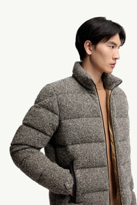 Infusing an essential design with texture and depth, the Agde short down jacket for men is crafted from wool with a micro boucle effect. Inspired by textile innovation, the Agde down jacket is crafted from a woven wool blend that stands out for its exceptional softness. The short puffer features nubuck piping along the pockets, adding a precious feel to even the most ordinary detail. Easy to wear throughout the colder season, the design is completed by a warm stand collar. DETAILS - Crafted from wool blend boucle - Airsoft lining - Down-filled - Zipper closure - Zipped pockets with Nubuck trim - Inner pockets with zipper and snap button closure - Elastic cuffs - Leather logo patch SIZE AND FIT - The model is wearing a size 3 and is 189 cm tall - Regular fit - Straight cut - Length (collar to hem): 70 cm COMPOSITION EXTERIOR: 60% Wool, 20% Lyocell, 20% Polyamide / Nylon; LINING: 100% Polyester; PADDING: 90% Down, 10% Feather;LEATHER TAG: COW; LEATHER OUTER APPLICATION: COW; LEATHER INSERTS: COW Product code K20911A00242598WCF92 Made in Romania