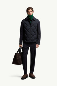 Elevating a classic design for men through refined fabrics, the Aiguille down shirt jacket is enriched with wool gabardine sleeves. A fresh take on classic menswear, the Aiguille down shirt jacket explores different textures and finishes. The overshirt is crafted pairs wool sleeves with longue saison. A protective nylon fabric, it is notable for its light weight and water-repellent protection. The material boasts a sophisticated matte effect, further emphasized through a quilted pattern. DETAILS - Crafted from recycled longue saison - Airsoft lining - Down-filled - Collar - Wool blend gabardine sleeves - Zipper closure - Zipped pockets - Patch pocket with snap button closure - Logo patch SIZE AND FIT - Regular fit - Straight cut - Length (collar to hem): 72 cm COMPOSITION EXTERIOR: 100% Polyamide / Nylon; LINING: 100% Polyester; PADDING: 90% Down, 10% Feather; 1 MATERIAL: 54% Virgin wool, 45% Polyester, 1% Elastane / Spandex;LEATHER TAG: COW Product code K20911G00012597YD776 Made in Romania
