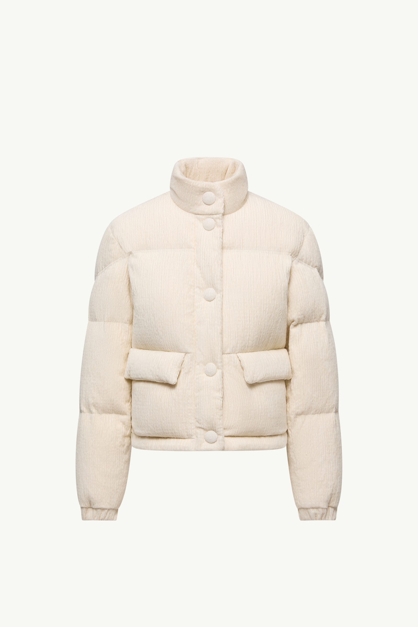 Infusing the design with texture and depth, the Aliminia short down jacket for women is crafted from velvet. Emblematic of the elegant textures seen throughout the collection, the Aliminia down jacket is presented in ribbed velvet. The short puffer is completed by maxi boudin quilting, adding structure to the silhouette while ensuring warmth. Perfect for falling temperatures, a stand collar completes the warmer. DETAILS - Crafted from cotton blend velvet - Polyester lining - Down-filled - Snap button closure - Pockets with snap button closure - Elastic cuffs - Hem with drawstring fastening - Logo patch SIZE AND FIT - The model is wearing a size 0 and is 177 cm tall - Regular fit - Cropped - Drawstring allows personalization COMPOSITION EXTERIOR: 99% Cotton, 1% Elastane / Spandex; LINING: 100% Polyester; PADDING: 90% Down, 10% Feather Product code K20931A00179598O002B Made in Italy