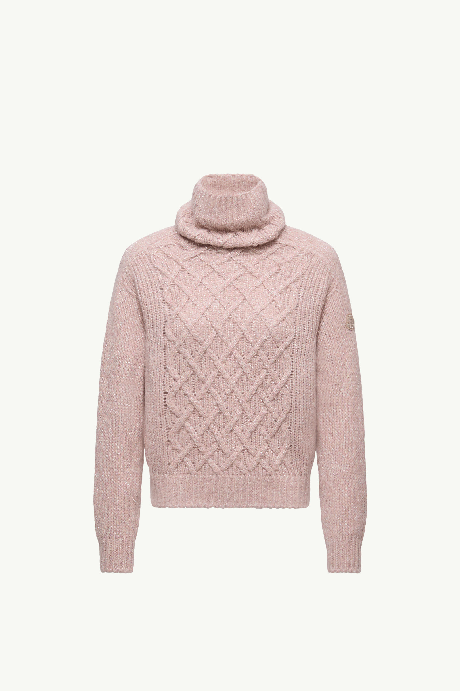 A foundational piece for any season, this turtleneck sweater for women is knit from a sophisticated alpaca blend. An invite to the art of layering, this turtleneck is crafted from a plush alpaca blend. Taking cues from classic knitwear, the heavy weight knit sweater is crafted with a textured Aran stitch. DETAILS - Crafted from an alpaca, nylon, viscose, wool and metallic fiber blend - Aran stitch - Gauge 3 - Turtleneck - Logo patch SIZE AND FIT - Loose fit COMPOSITION BASE FABRIC: 56% Alpaca, 31% Polyamide / Nylon, 5% Viscose / Rayon, 5% Wool, 3% METALLIZED FIBER Product code K20939F00015M1209P55 Made in Romania