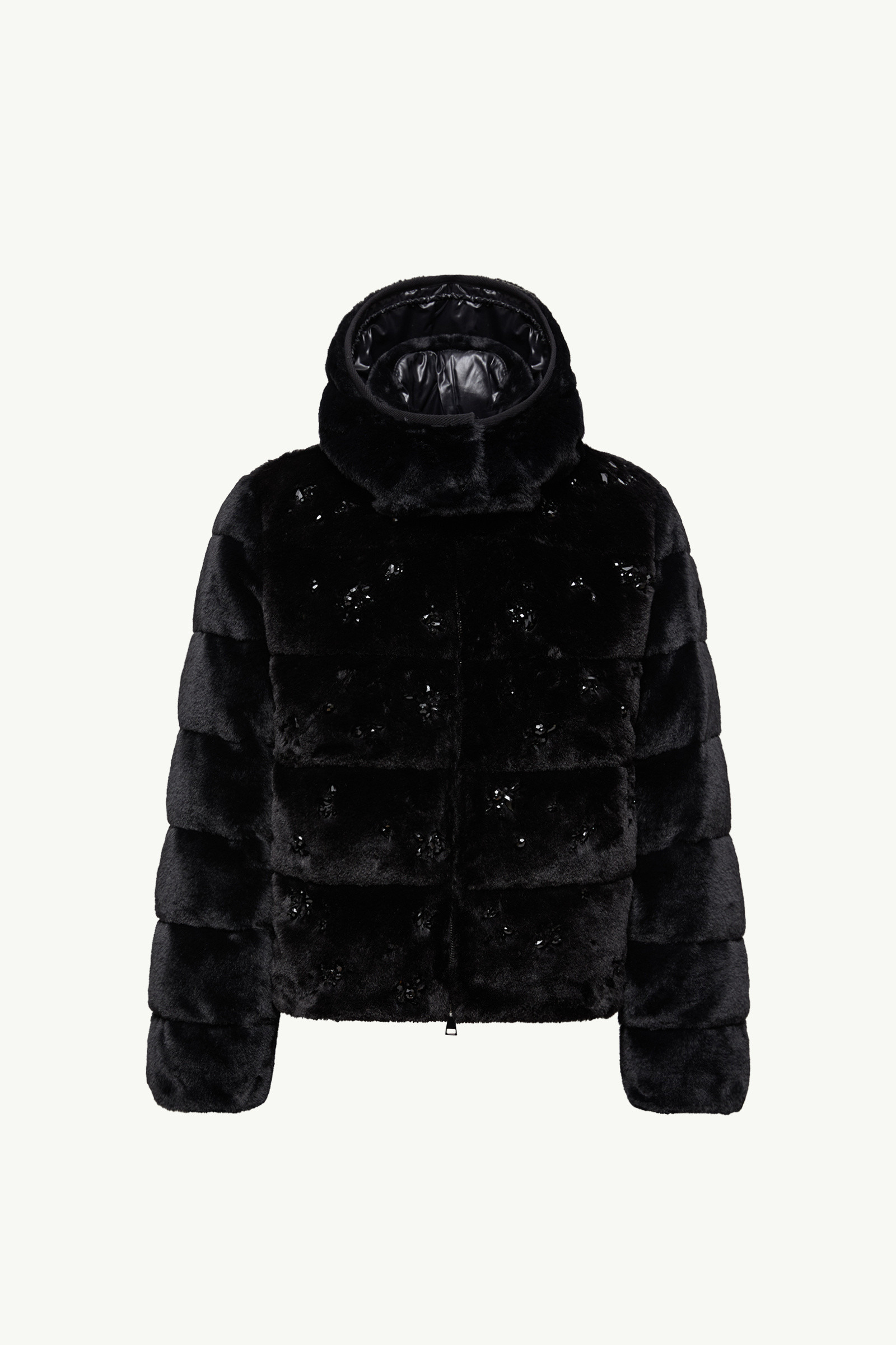 A refined take on a timeless design, the Andronne short down jacket for women stands out with glittering sequins in a floral pattern. Inspired by the beauty of the natural world, the Andronne down jacket is defined by sequin-embroidered flowers. The short puffer is crafted from plush fabric, creating a soft tactile effect. Featured in a classic fit, an enveloping stand collar and adjustable hemline infuse the standout design with warmth and comfort. DETAILS - Crafted from faux fur - Nylon laque lining - Down-filled - Detachable hood - Zipper closure - Zipped pockets - Elastic cuffs and hem - Logo patch SIZE AND FIT - The model is wearing a size 0 and is 180 cm tall - Regular fit - Length (collar to hem): 55 cm COMPOSITION EXTERIOR: 100% Polyester; LINING: 100% Polyamide / Nylon; HOOD LINING: 100% Polyamide / Nylon; PADDING: 90% Down, 10% Feather Product code K20931A0024989B86999 Made in Italy
