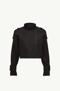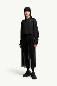 Perfect for layering, this women's cape combines lightweight design with technical protection. Exemplary of forward-thinking womenswear cut from performance-oriented fabrics, this cape is crafted from technical poplin. The fabric offers water-repellent protection and also gives a crisp and structured effect to the style. The cropped cut makes it a casual staple, easily adding t of a variety of looks. DETAILS - Crafted from technical poplin - Collar with snap button closure - Zipper closure - Button closure on shoulders and cuffs - Silicone logo patch COMPOSITION DETAILS PADDING: 100% Polyester; EXTERIOR: 63% Polyester, 37% Cotton; LINING: 63% Polyester, 37% Cotton Product code K20933G00024549P3999 Made in Italy