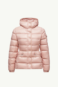Feminine and functional, the Barante short down jacket reimagines a '70s aesthetic for the modern woman. Inspired by the '70s, the Barante down jacket is crafted from nylon with a glossy finish. Deepening the style's feminine aesthetic, this short puffer is accentuated by a nipped-in waist that flares into an A-line silhouette. An adjustable hood and emblematic logo patch add a finishing touch to the design. DETAILS - Crafted from nylon laque - Nylon laque lining - Down-filled - Adjustable hood - Zipper and snap button closure - Zipped pockets - Adjustable cuffs SIZE AND FIT - Slim fit - Length (collar to hem): 64 cm COMPOSITION EXTERIOR: 100% Polyamide / Nylon; LINING: 100% Polyamide / Nylon; HOOD LINING: 100% Polyamide / Nylon; PADDING: 90% Down, 10% Feather Product code K20931A00083597Z8512 Made in Moldova or Romania