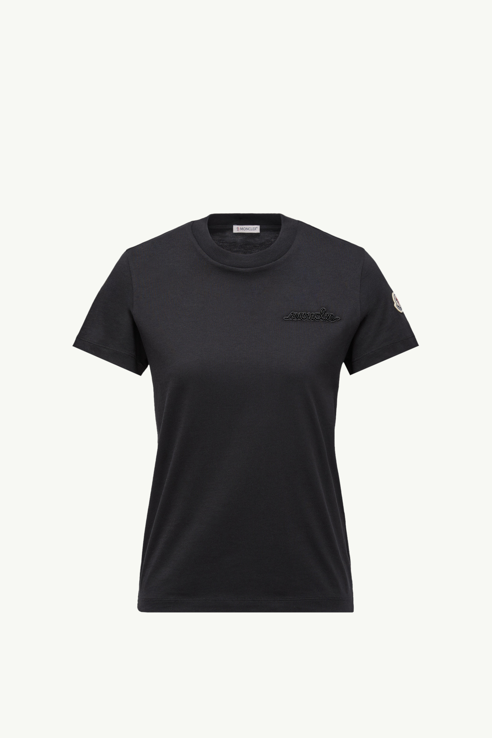 Essentials in the women's collection are reimagined with graphic details. This short-sleeved t-shirt features a beaded logo. An everyday staple, this short sleeved t-shirt is adorned with an beaded logo. A versatile design fit for a range of occasions, the crew neck is crafted from comfortable cotton jersey. DETAILS - Crafted from cotton jersey - Ribbed crew neck - Short sleeves - Embroidered logo with beads SIZE AND FIT - The model is wearing a size XS and is 179 cm tall - Regular fit COMPOSITION BASE FABRIC: 100% Cotton; Ribs: 100% Cotton Product code K20938C0001989AIJ999 Made in Turkey
