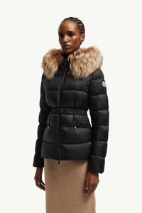 Luxury and protection characterize the women's Boed down jacket, crafted from longue saison and adorned with a long-haired shearling trim. The Boed down jacket delivers a sophisticated winter look, showcasing a feminine silhouette accentuated by a belted waistline. Crafted from longue saison, the hooded puffer jacket is finished with a luxurious long-haired shearling trim. DETAILS - Crafted from longue saison - Longue saison lining - Down-filled - Hood with a detachable long-haired sheepskin trim - Zipper closure - Zipped pockets - Elastic belt with snap button closure SIZE AND FIT - The model is wearing a size 0 and is 175 cm tall - Regular fit - Fitted waist - Elasticized belt - Length (collar to hem): 62 cm COMPOSITION EXTERIOR: 100% Polyamide / Nylon; LINING: 100% Polyamide / Nylon; HOOD LINING: 100% Polyamide / Nylon; PADDING: 90% Down, 10% Feather; DETAILS PADDING: 100% Polyester;Leather with hair 1: SHEEP; Origin: China; Dyed Product code K20931A00099595FE99M Made in Romania