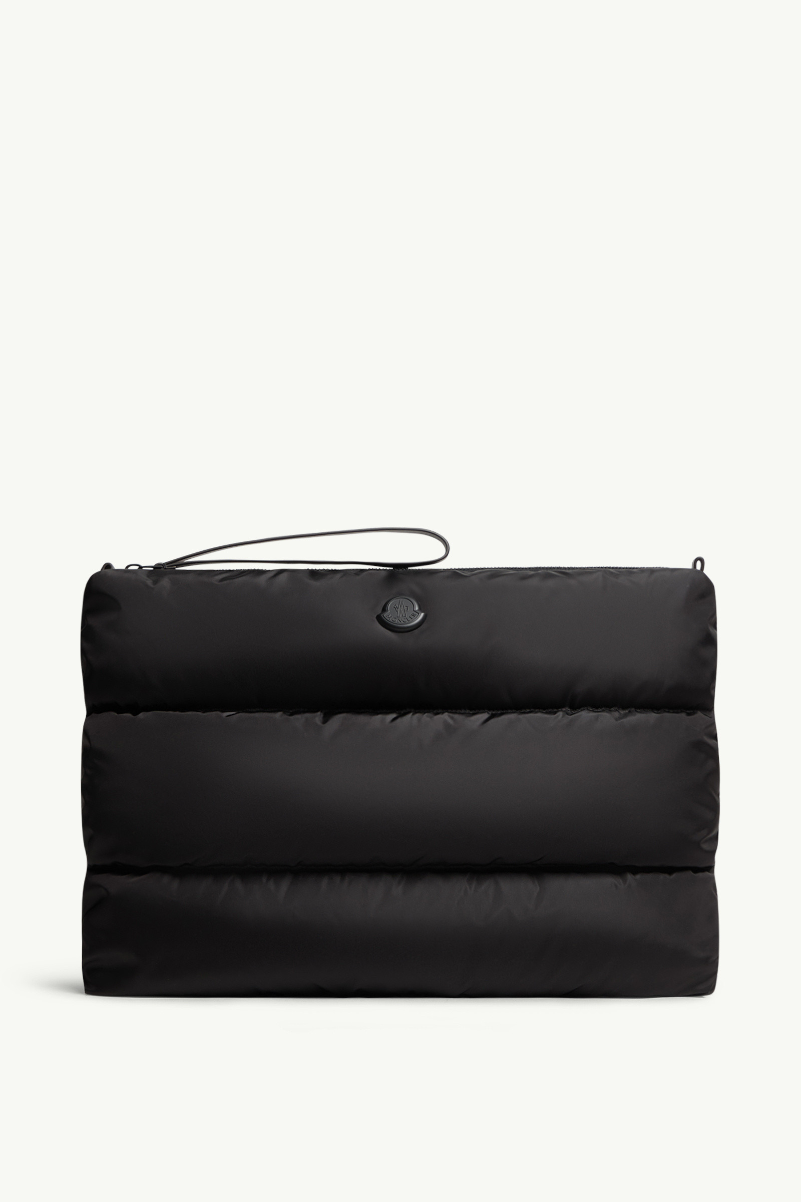 A practical accessory, the Caradoc laptop case is crafted from nylon with a protective water-repellent finish. A functional accessory, the Caradoc laptop case is crafted from down-filled nylon with a water-repellent finish. The pouch is equipped with a wrist strap and zipper closure. DETAILS - Crafted from nylon technique - Nylon lining - Down-filled - Leather shoulder strap - Zipper closure - Metal logo COMPOSITION EXTERIOR: 100% Polyamide / Nylon; LINING: 100% Polyamide / Nylon; PADDING: 90% Down, 10% Feather;LEATHER INSERTS: CALF Product code K209A6B00001M7451999 Made in Italy