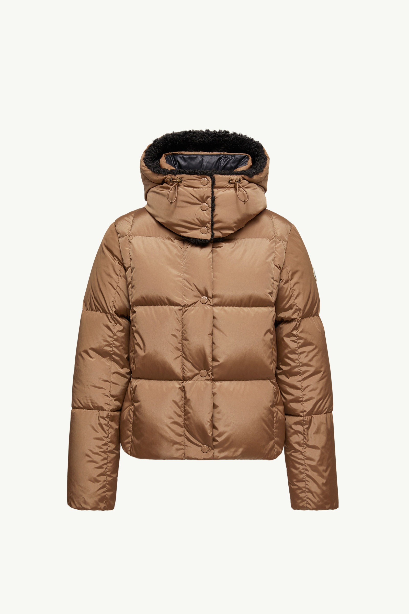 An elegant essential for colder weather, the women's Castelnou short down jacket pairs geometric quilting with a satin finish. Protective materials and elevated textures rise to the fore in the Castelnou down jacket. The short puffer is crafted from nylon technique, a water-repellent fabric with a silky smooth feel. Adding softness, teddy fleece lining on the hood completes the design. DETAILS - Crafted from nylon technique - Longue saison lining - Down-filled - Detachable and adjustable hood with teddy fleece lining - Zipper closure - Zipped pockets COMPOSITION EXTERIOR: 100% Polyamide / Nylon; LINING: 100% Polyamide / Nylon; HOOD LINING: 100% Polyester; PADDING: 90% Down, 10% Feather Product code K20931A00150539ZD226 Made in Romania