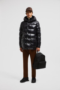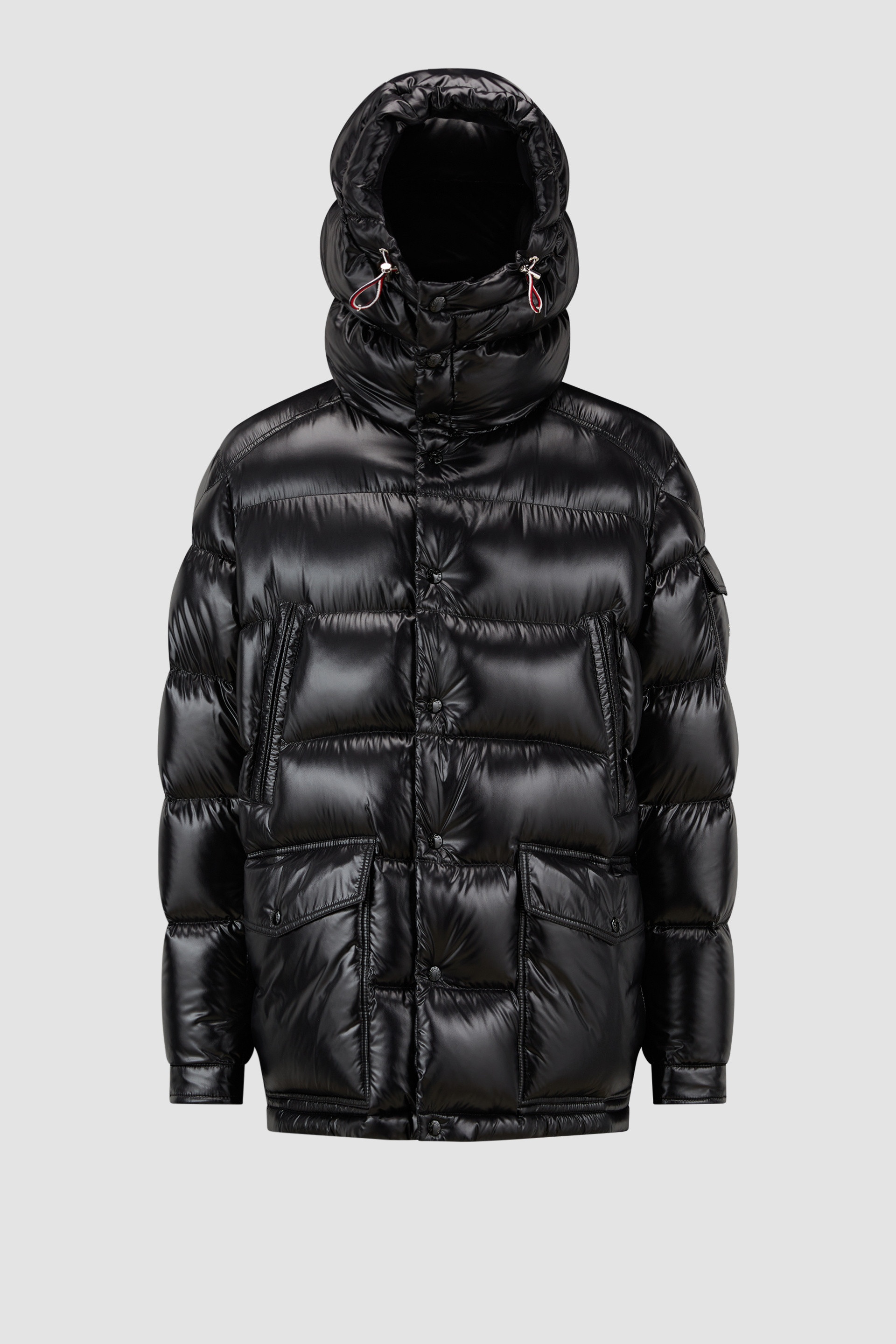Quintessentially Moncler, the Chiablese short down jacket for men is crafted from recycled nylon laque. In line with the brand's sustainability initiatives, the Chiablese down jacket is crafted from recycled nylon laque. The hooded puffer has a distinct Moncler point of view, being embellished with discrete tricolor accents and an emblematic patch pocket on the sleeve. DETAILS - Crafted from recycled nylon laque - Recycled nylon laque lining - Down-filled - Adjustable hood - Zipper and snap button closure - Zipped chest pockets - Pockets with snap button closure - Adjustable cuffs - Adjustable waist with tricolor elastic drawstring fastening SIZE AND FIT - The model is wearing a size 3 and is 189 cm tall - The model measures: chest 84 cm, waist 71 cm, hips 89 cm - Loose fit COMPOSITION EXTERIOR: 100% Polyamide / Nylon; LINING: 100% Polyamide / Nylon; LINING 1: 100% Polyamide / Nylon; PADDING: 90% Down, 10% Feather Product code J20911A001625963V999 Made in Armenia