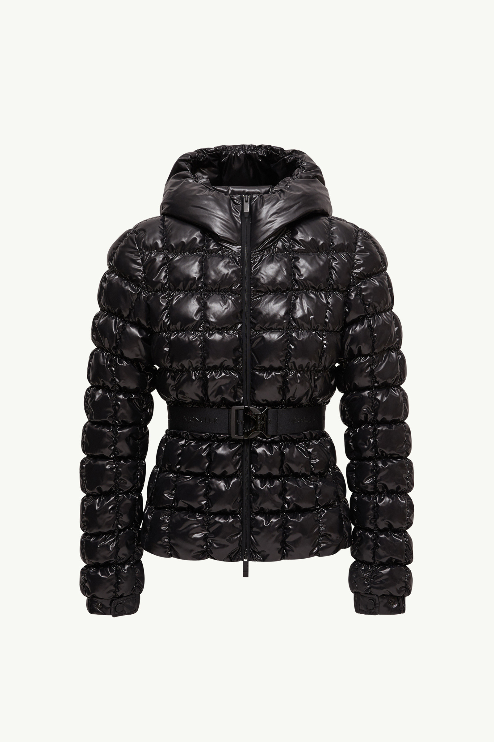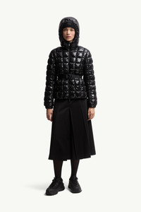 A feminine shape is fused with a fashion-forward approach in the Eynard short down jacket from the women's collection. A visually striking piece, the Eynard down jacket interprets graphic quilting with its squared pattern. Crafted from nylon laque, the short puffer boasts an elastic belt that enhances the flared silhouette. DETAILS - Crafted from nylon laque - Nylon laque lining - Down-filled - Hood - Zipper closure - Zipped pockets - Elastic belt - Adjustable cuffs - Silicone logo patch SIZE AND FIT - The model is wearing a size 0 and is 177 cm tall - Slim fit - Length (collar to hem): 58 cm COMPOSITION EXTERIOR: 100% Polyamide / Nylon; LINING: 100% Polyamide / Nylon; HOOD LINING: 100% Polyamide / Nylon; PADDING: 90% Down, 10% Feather Product code K20931A00158597Z8999 Made in Romania