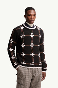 Part of the men's Moncler Grenoble collection, this sweater nods to the alpine landscape with an embroidered snowflake pattern. Part of a collection where high style came to the fore, this sweater is defined by an intricate embroidered pattern. The crew neck is crafted from wool, offering warmth and snugness. DETAILS - Crafted from comfort wool - Gauge 3 - Embroidered motif SIZE AND FIT - The model is wearing a size L and is 189 cm tall - Regular fit COMPOSITION BASE FABRIC: 92% Wool, 8% Polyamide / Nylon; 1 MATERIAL: 100% Virgin wool; Embroidery: 100% Virgin wool Product code K209I9C00001M2346998 Made in Italy