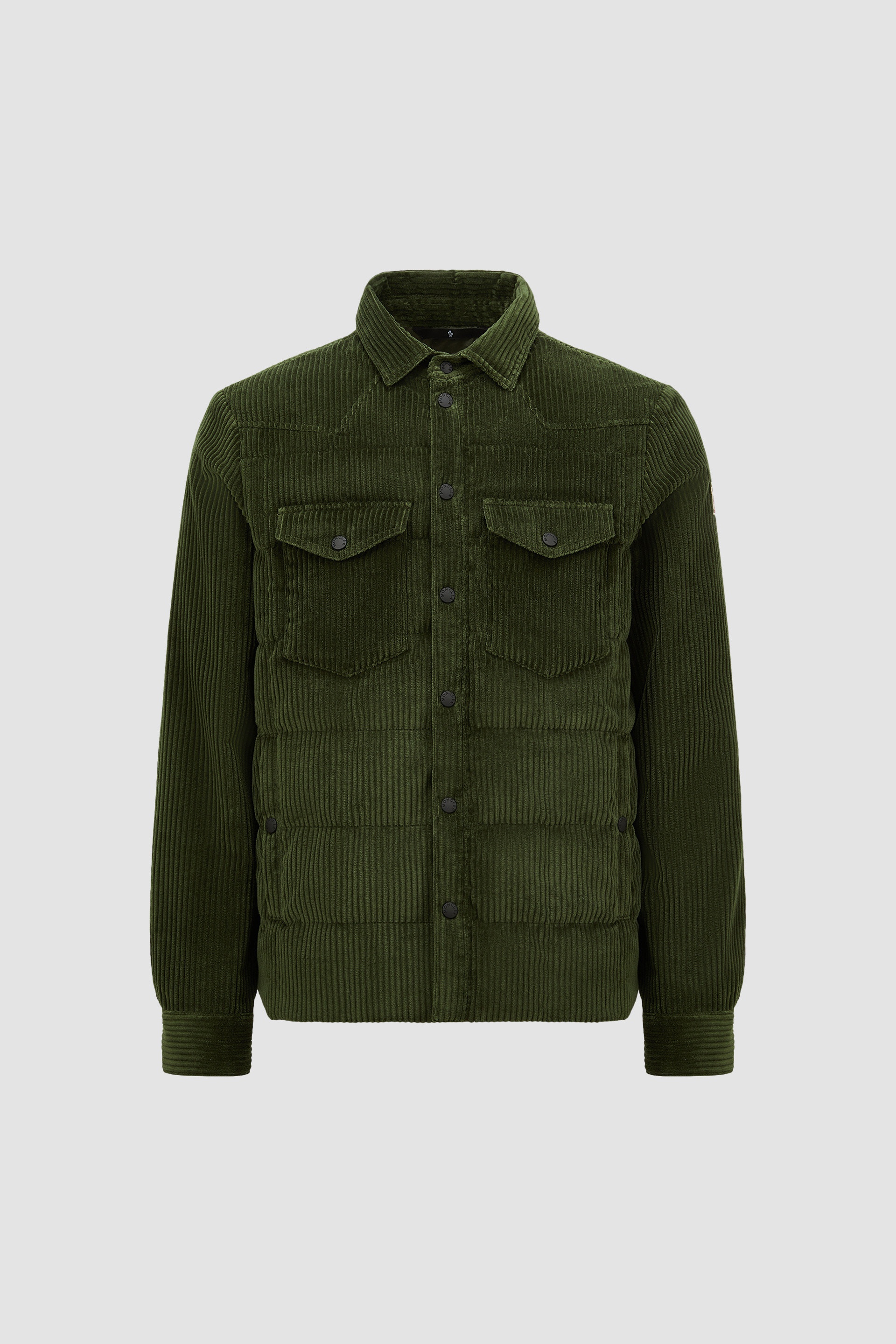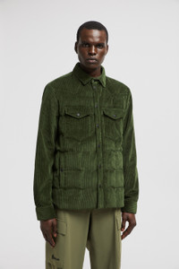 Technical performance meets luxurious fabrics in the Moncler Grenoble Gelt down shirt jacket for men. Crafted from corduroy, the Gelt down-filled shacket is a contemporary take on the casual winter outerwear. The shirt jacket's straight cut features a host of overshirt-inspired details, including a classic pointed collar, chest pockets and a snap button front. DETAILS - Crafted from stretch corduroy - Recycled micro ripstop lining - Down-filled - Snap button closure - Pockets with snap button closure - Adjustable cuffs SIZE AND FIT - Regular fit - Straight cut COMPOSITION BASE FABRIC: 98% Cotton, 2% Elastane / Spandex; LINING: 100% Polyester; PADDING: 90% Down, 10% Feather; DETAILS PADDING: 100% Polyester Product code K10971G0000654AL0891 Made in Romania