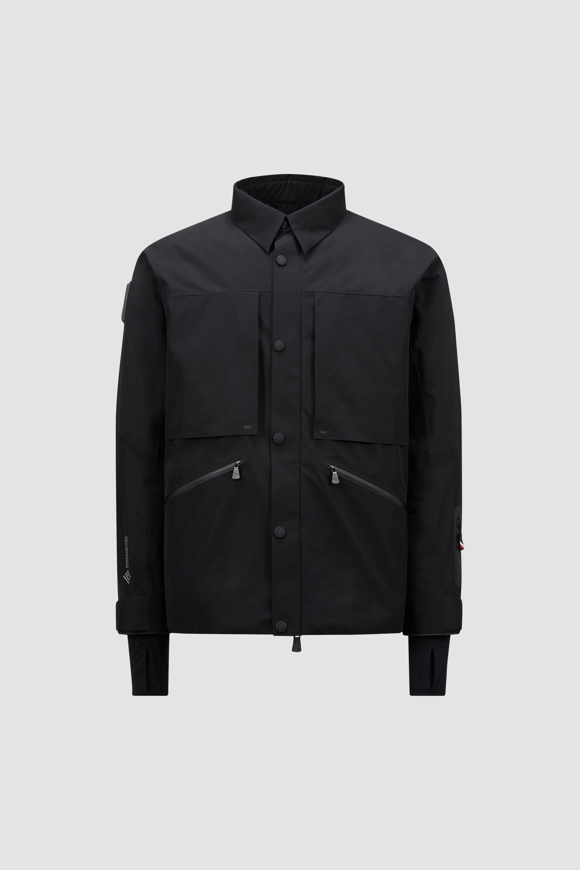 Guaranteeing high-performance on the mountain top, the Moncler Grenoble Gorner ski jacket for men is crafted from weatherproof GORE-TEX laminate. Indispensable for alpine ski, the Gorner GORE-TEX laminate shirt jacket delivers water- and wind-proof protection. The shacket is insulated and equipped with heat-sealed seams, ensuring you stay warm even in extreme weather. An essential for the slopes, the overshirt is equipped with a powder skirt and a Recco® reflector while a detachable hood adds protection. DETAILS - Designed for alpine skiing - Crafted from 2L technical plain weave GORE-TEX - Nylon lining - Padded - Heat-sealed seams - Detachable hood with visor - Collar - YKK® AquaGuard® highly water-resistant zipper closure - Outer pockets with YKK® AquaGuard® highly water-resistant zipper closure - Inner media pocket - Ski pass pocket - Windproof powder skirt - RECCO® reflector - Adjustable cuffs - Stretch jersey wrist gaiters - Bonded logo details SIZE AND FIT - The model is wearing a size 3 and is 189 cm tall - The model measures: chest 93 cm, waist 74 cm, hips 91 cm - Loose fit COMPOSITION BASE FABRIC: 100% Polyester; LINING: 100% Polyester; BOTTOM LINING : 100% Polyamide / Nylon; HOOD: 100% Polyamide / Nylon; PADDING: 100% Polyester; 1 MATERIAL: 83% Polyamide / Nylon, 17% Elastane / Spandex Product code J20971G00007549SU999 Made in Romania