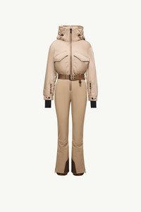 A fusion of comfort and style, this women's Moncler Grenoble ski suit is optimized for warmth and ease of movement on the slopes. A high-altitude style, this ski suit is crafted from technical poplin that stretches four ways for maximum freedom of movement. A true essential for the mountains, powder cuffs and hem protection complete the design. DETAILS - Designed for skiing and snowboarding - Crafted from 3L 4-way stretch technical poplin - Body, sleeves and hood in micro gabardine - Polyester and technical polyester lining - Down-filled and padded - Adjustable hood with teddy lining - YKK® AquaGuard® NATULON® water-repellent zipper closure - Detachable belt with leather details - Pockets with YKK® AquaGuard® NATULON® water-repellent zipper and snap button closure - Ski pass pocket with YKK® AquaGuard® NATULON® water-repellent zipper closure - Powder cuffs - Ski cut hem protection - Stretch jersey wrist gaiters SIZE AND FIT - The model is wearing a size S and is 177 cm tall COMPOSITION BASE FABRIC: 68% Polyester, 24% Polyamide / Nylon, 8% Elastane / Spandex; BODY LINING: 100% Polyester; HOOD LINING: 100% Polyester; SLEEVES LINING: 89% Polyester, 11% Elastane / Spandex; BOTTOM LINING : 100% Polyamide / Nylon; PADDING: 90% Down, 10% Feather; DETAILS PADDING: 100% Polyester; 1 MATERIAL: 100% Polyester; 2 MATERIAL: 100% Polyamide / Nylon; 3 MATERIAL: 83% Polyamide / Nylon, 17% Elastane / Spandex;LEATHER EXTERIOR: COW Product code K20982G00006M7340P22 Made in Romania