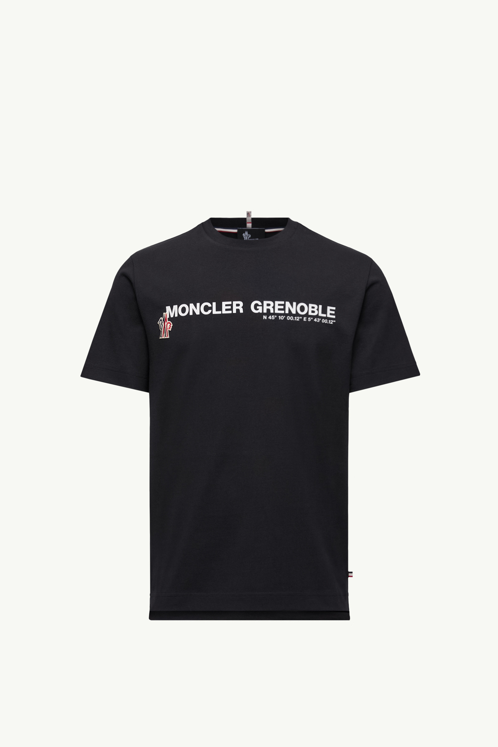 A men's Moncler Grenoble design, this short sleeve t-shirt captures the collection's adventurous spirit with a logo print. An essential layer for the city or the mountain, this short sleeve t-shirt is crafted from soft cotton. Drawing from the brand's heritage, the crew neck is embellished with a printed logo that features the coordinates of the city of Grenoble. DETAILS - Crafted from cotton stretch jersey - Ribbed crew neck - Short sleeves - Embossed and printed logo motif SIZE AND FIT - The model is wearing a size L and is 189 cm tall - Slim fit COMPOSITION BASE FABRIC: 95% Cotton, 5% Elastane / Spandex; Ribs: 95% Cotton, 5% Elastane / Spandex Product code K20978C0000189AW1999 Made in Turkey