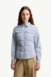 Defying the classic conventions of mountainwear, the women's Moncler Grenoble Nangy down shirt jacket is crafted from corduroy. Specialized for trekking and hiking, the Nangy jacket pushes boundaries through unexpected fabrics. The hooded design is crafted from tweed, refined further through chambray and corduroy details. Prepared for comfort during physical activity, the design is completed by a technical mesh lining and an inside mesh panel. DETAILS - Designed for trekking and hiking - Crafted from corduroy - Poplin lining - Sleeves with tech mesh lining - Down-filled - Snap button closure - Pockets with YKK® AquaGuard® NATULON® water-repellent zipper closure - Inside media pocket with - Adjustable cuffs SIZE AND FIT - The model is wearing a size 1 and is 180 cm tall - Slim fit - Length (collar to hem): 66 cm COMPOSITION BASE FABRIC: 100% Cotton; LINING: 100% Cotton; SLEEVES LINING: 100% Polyester; PADDING: 90% Down, 10% Feather; DETAILS PADDING: 100% Polyester; 1 MATERIAL: 100% Cotton Product code L10981G0000359985702 Made in Romania