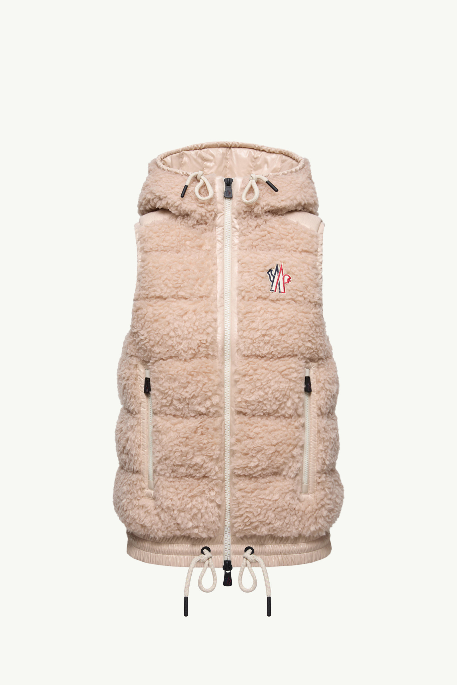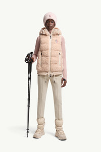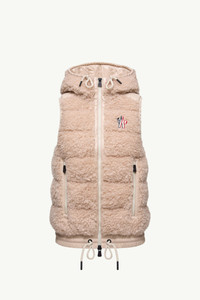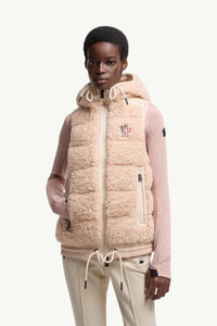 Encapsulating an apres ski mood, this down vest from the women's Moncler Grenoble collection is crafted from teddy fleece. Crafted from plush teddy fleece, this down vest adds a touch of luxury to moments of winter leisure. The warmer is enriched with a trim in nylon laque, a signature Moncler fabric notable for its glossy texture and water-repellent protection. An adjustable hood completes the design. DETAILS - Designed for trekking and hiking - Crafted from teddy fleece - Nylon laque shoulders and trim - Nylon laque lining - Down-filled - Adjustable hood - Zipper closure - Zipped pockets - Hem with elastic drawstring fastening SIZE AND FIT - The model is wearing a size S and is 178 cm tall - Regular fit COMPOSITION BASE FABRIC: 100% Polyester; 1 MATERIAL: 100% Polyamide / Nylon; 2 MATERIAL: 100% Polyamide / Nylon; LINING: 100% Polyamide / Nylon; HOOD LINING: 100% Polyamide / Nylon; PADDING: 90% Down, 10% Feather; DETAILS PADDING: 100% Polyester Product code K20988G00014899A9511 Made in Moldova