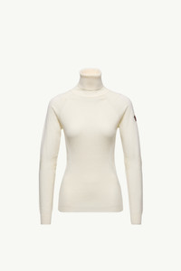 An essential layer of warmth for winter relaxation, this wool blend turtleneck features in the women's Moncler Grenoble collection. The perfect companion for mountain leisure or bracing winter in the city, this sweater is featured in a protective turtleneck silhouette. The design is knit from a wool blend with a comfortable stretch finish. DETAILS - Crafted from stretch wool blend - Gauge 18 - Turtleneck - Embossed logo SIZE AND FIT - The model is wearing a size S and is 178 cm cm tall - Regular fit COMPOSITION BASE FABRIC: 95% Virgin wool, 5% Polyester Product code K20989F00001M112204A Made in Italy