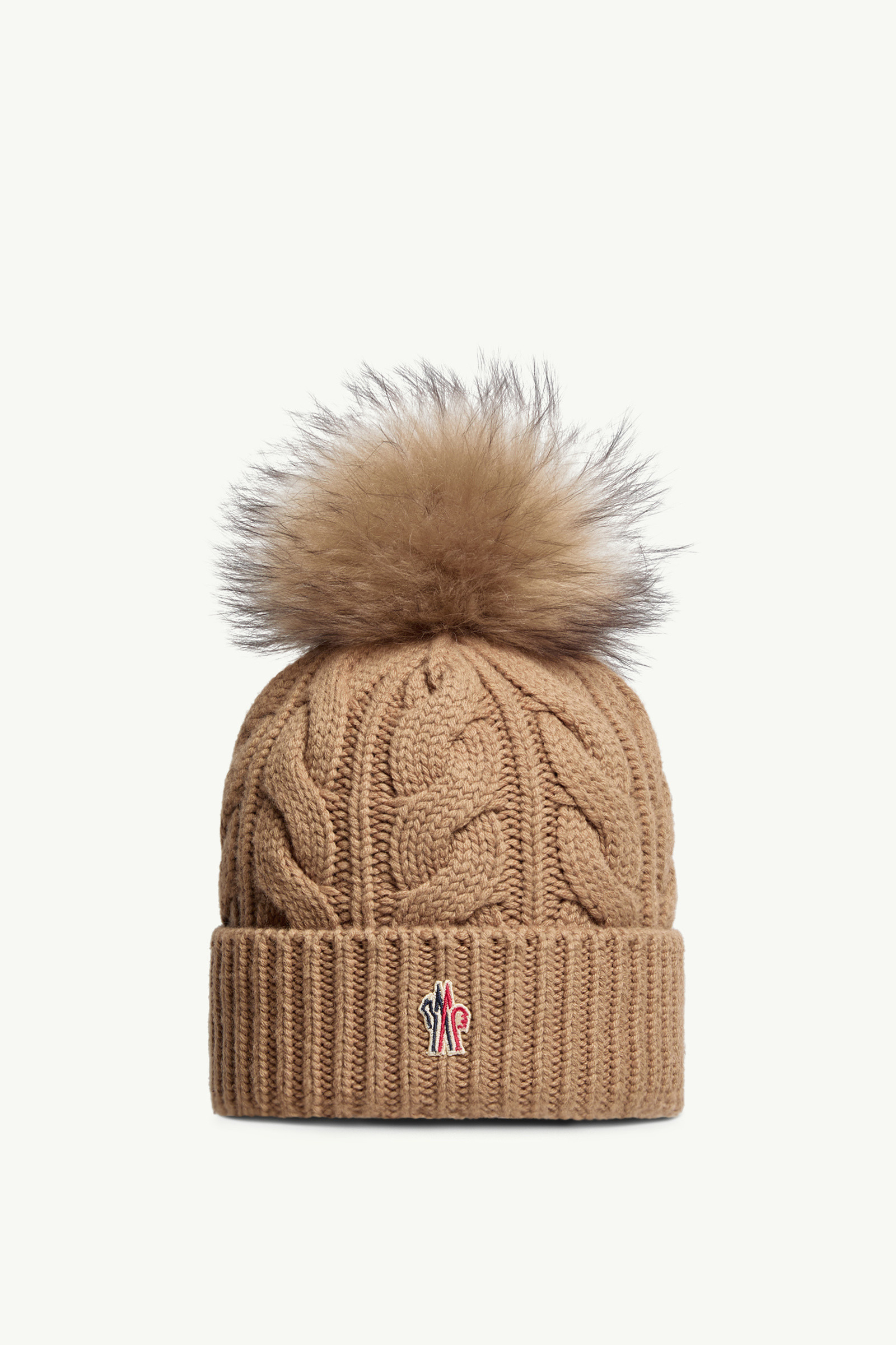Elevating a winter wardrobe, this women's Moncler Grenoble wool and cashmere beanie features a long haired sheep skin pom pom. A practical yet luxurious accessory for apres ski fun or cold weather in the city, this beanie is crafted from wool and cashmere. The heavy knit accessory is completed by a pom pom made from the softest long haired sheep skin. DETAILS - Crafted from a wool and cashmere blend - Cable knit and fisherman's rib knit fold - Gauge 3 - Long-haired sheepskin pom-pom - Logo patch COMPOSITION BASE FABRIC: 70% Virgin wool, 30% Cashmere;Leather with hair 1: LAMB; Origin: China; Dyed Product code K20983B00011A0069234 Made in Italy