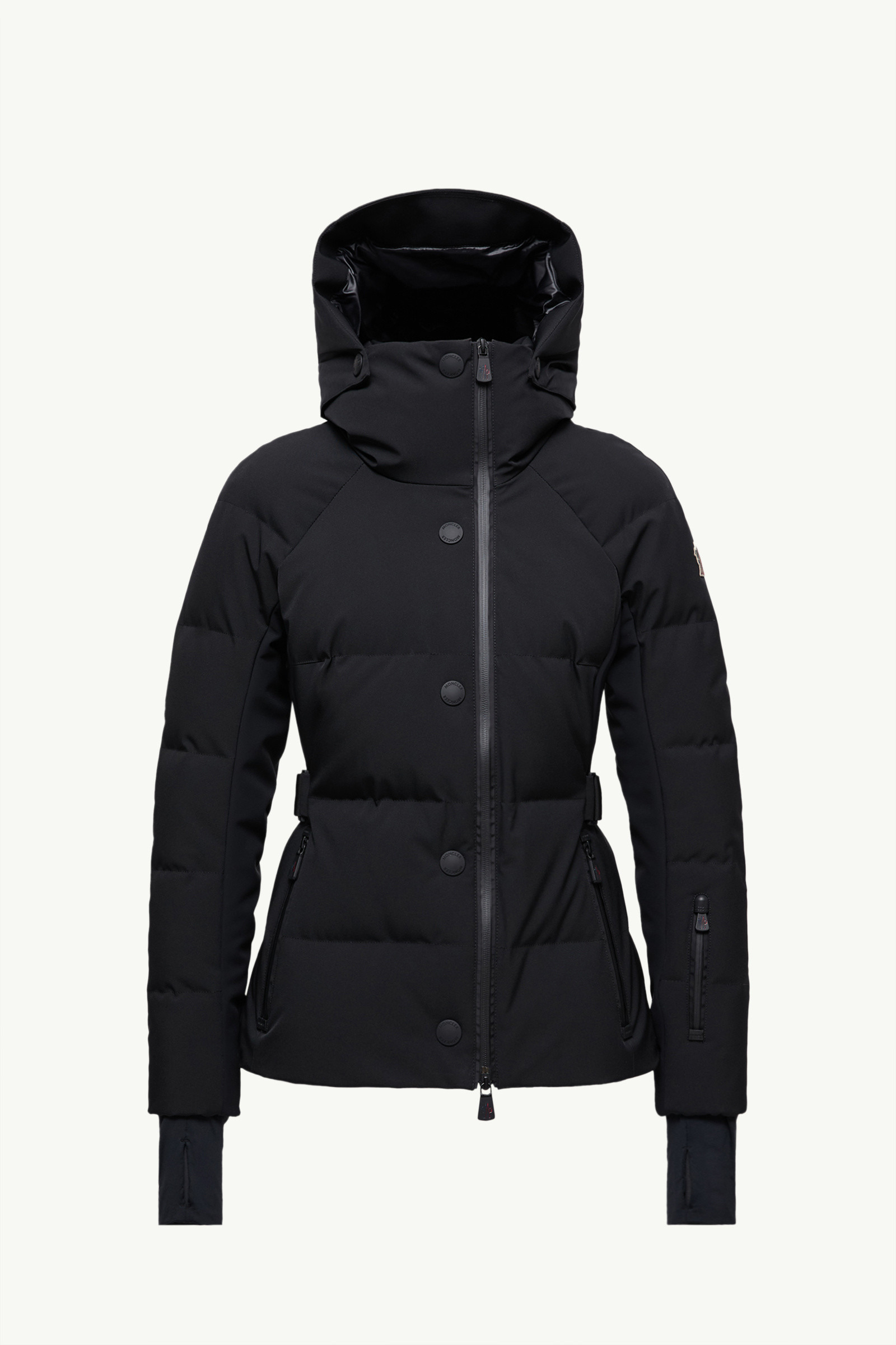 Crafted from water-repellent and windproof materials, the Guyane down jacket for women adds a graphic touch to looks for the slopes. Constructed with 2-layer stretch nylon, the Guyane down jacket for women features technical fleece inserts that deliver an extra dose of comfort. The puffer jacket is enhanced with a windproof collar, water-resistant zippers, a powder skirt and wrist gaiters. DETAILS - Deigned for skiing and snowboarding - Crafted from 2L four-way stretch nylon - Stretch polyester lining - Down-filled - Detachable hood with visor and polyester lining - Performance Hardfleece underarms and sides - Windproof large collar - YKK® AquaGuard® highly water-resistant zipper and snap button closure - Pockets with YKK® AquaGuard® highly water-resistant zipper closure - Inner media pocket with YKK® AquaGuard® highly water-resistant - zipper closure - Ski pass pocket with YKK® AquaGuard® highly water-resistant zipper closure - Powder skirt - Cuffs with pull tab adjusters and snap buttons - Stretch jersey wrist gaiters SIZE AND FIT - Slim fit - Length (collar to hem): 62 cm COMPOSITION BASE FABRIC: 87% Polyamide / Nylon, 13% Elastane / Spandex; LINING: 89% Polyester, 11% Elastane / Spandex; HOOD LINING: 100% Polyester; SLEEVES LINING: 89% Polyester, 11% Elastane / Spandex; BOTTOM LINING : 100% Polyester; PADDING: 90% Down, 10% Feather; DETAILS PADDING: 100% Polyester; 1 MATERIAL: 48% Polyester, 33% Polyamide / Nylon, 19% Elastane / Spandex; 2 MATERIAL: 83% Polyamide / Nylon, 17% Elastane / Spandex Product code K20981A00048597S5999 Made in Romania