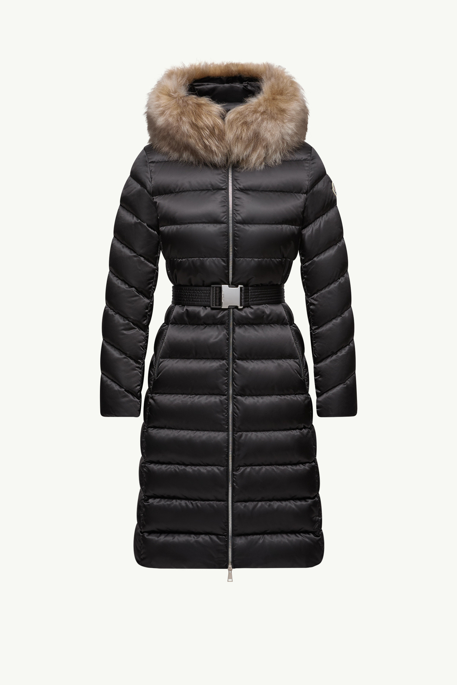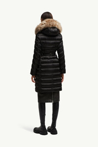 A chic addition to a woman's wardrobe, the Leersie long down jacket is easily layered over day and eveningwear, boasting a long-haired shearling trim. Designed for women with a timeless taste, the Leersie down coat is a classic style crafted from nylon with a satin-feel. A feminine silhouette is achieved with a detachable belt, while a long-haired shearling trim on the hood adds a hint of glamour to the long puffer. DETAILS - Crafted from nylon satin - Nylon lining - Down-filled - Hood with a detachable long-haired sheepskin trim and nylon satin lining - Zipper closure - Zipped pockets - Detachable and adjustable belt SIZE AND FIT - Regular fit - Fitted waist - Elasticized belt - Length (collar to hem): 94 cm COMPOSITION EXTERIOR: 100% Polyamide / Nylon; LINING: 100% Polyamide / Nylon; HOOD LINING: 100% Polyamide / Nylon; PADDING: 90% Down, 10% Feather;Leather with hair 1: SHEEP; Origin: China; Dyed Product code K20931C000355968599M Made in Armenia